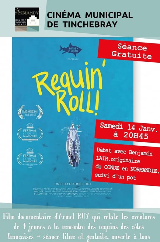 Ciné-débat 2023, diffusion du film « Requin’ roll! » (2021) d’Armel Ruy avec la participation de Benjamin Lair, originaire de Condé