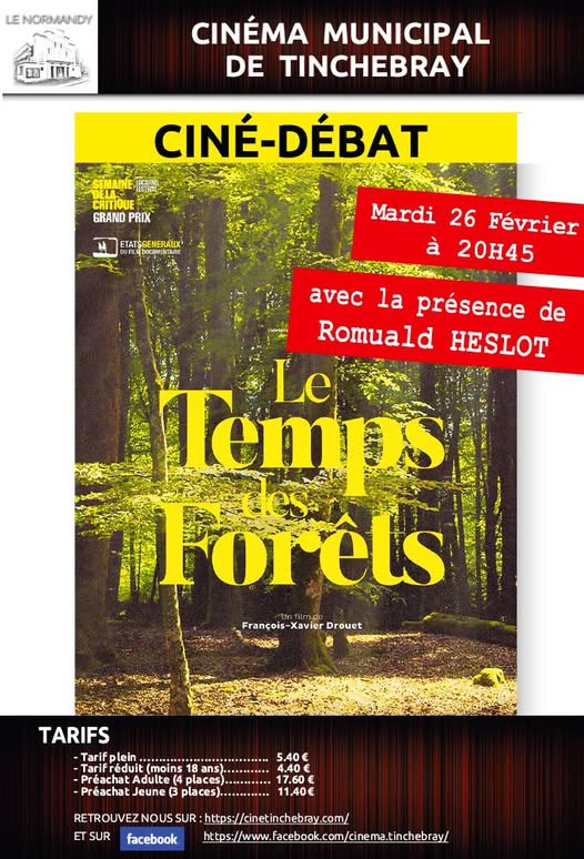 Ciné-débat 2019, diffusion de « Le Temps des Forêts » (2018) de François-Xavier Drouet, participation de Romuald Heslot, technicien forestier