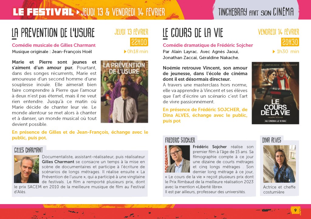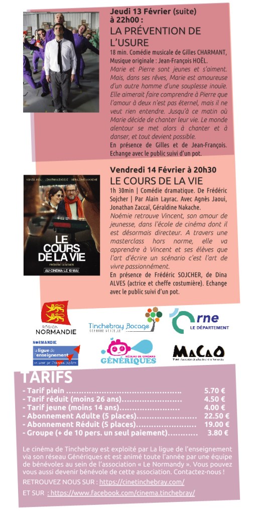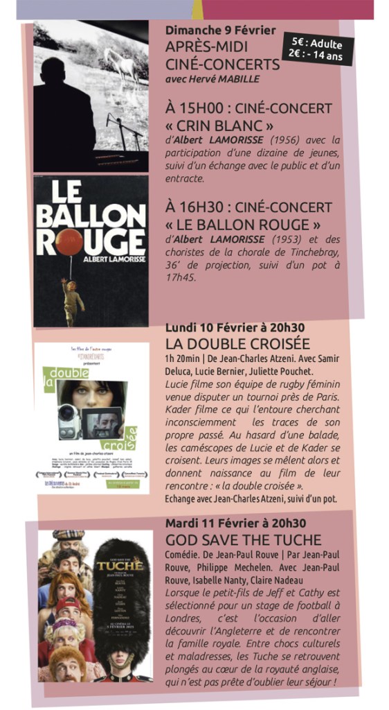 Forte du succès de son premier festival d’octobre 2022 et du weekend avec Yolande MOREAU en février 2024, l’équipe du cinéma de Tinchebray vous propose un deuxième festival. Tinchebray refera son cinéma en février 2025 avec comme thème : « Les Métiers du Cinéma ». Le son et le décor seront principalement présentés à travers deux spectacles musicaux vivants de renommée internationale et deux ciné-concerts pour le son, une exposition à la Médiathèque pour le décor. En amont du festival, un concours « Création d’une bande son » a été organisé et sera évalué et récompensé par un jury de professionnels. Un atelier bruitage et un concours de dessins ont été également proposés aux plus jeunes. Venez revivre les débuts du cinéma avec Georges Méliès, découvrir le ciné-concert, rencontrer des professionnels du cinéma présents lors de chaque spectacle ou projections (réalisateurs, chef décorateur, musiciens, cheffe costumière, actrice, …)